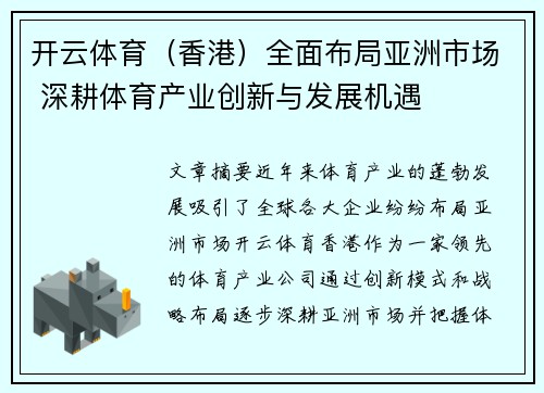 本文旨在分析3377体育平台在中国大陆市场的崛起过程、发展潜力以及未来趋势。文章从多个角度阐述3377体育平台如何在竞争激烈的体育娱乐平台中占据一席之地,探讨其在技术创新、用户需求、市场策略以及行业环境等方面的优势和潜力。通过对这些关键因素的深入剖析,文章还将展望该平台在未来几年内的发展趋势。本文将详细分为四个部分,分别分析3377体育平台在大陆市场的崛起原因、竞争优势、面临的挑战和未来发展机遇,为读者呈现一个全面的行业视角。
