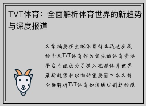 TVT体育:全面解析体育世界的新趋势与深度报道